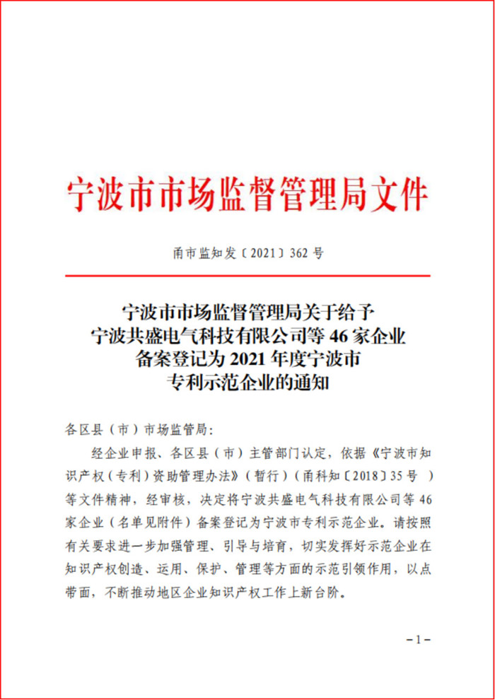 2021年11月19日,寧波市市場(chǎng)監(jiān)督管理局辦公室發(fā)布《 2021 年度寧波市專利示范企業(yè)的通知》,熱烈祝賀科瑞特榮幸入選!