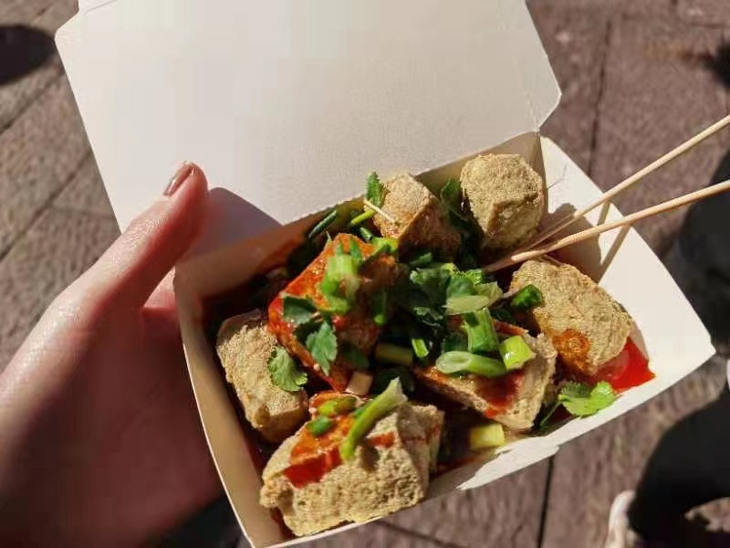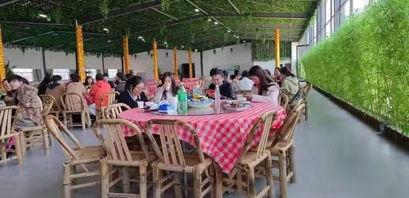 中午,大家在達(dá)人村文化廣場(chǎng)就餐。