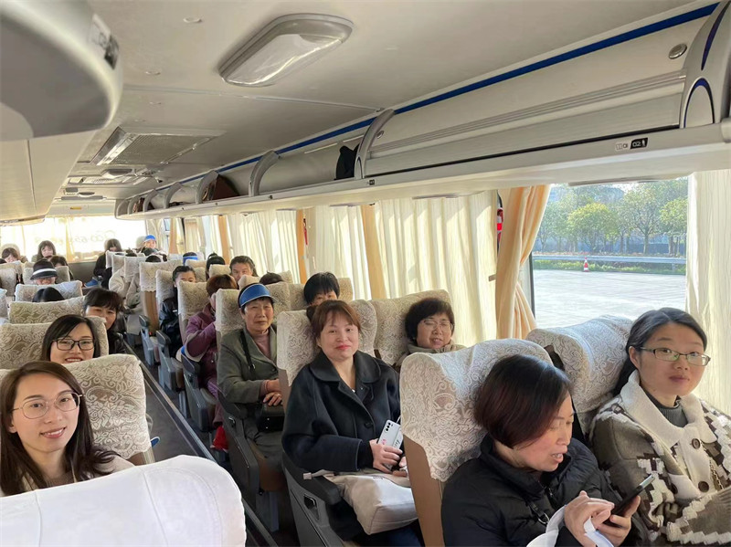 節(jié)日的早上,大家在一片歌聲中乘坐旅游大巴前往目的地。