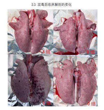 從大體解剖上可見,園蘭清預(yù)防組與治療組均顯著降低了肺的病變程度,且預(yù)防組效果優(yōu)于治療組。