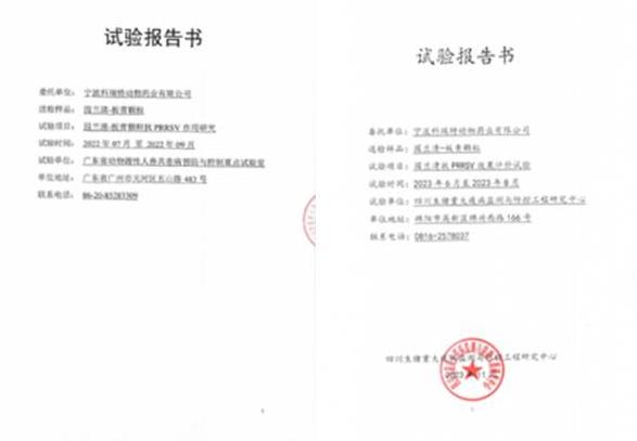 2023年6~8月,寧波科瑞特委托四川生豬重大疫病監(jiān)測與防控工程研究中心,進行了《園蘭清防控PRRSV效果評價試驗》,試驗表明園蘭清具有降低PRRSV引起的體溫升高、臨床癥狀持續(xù)時間、促進康復(fù)等作用。